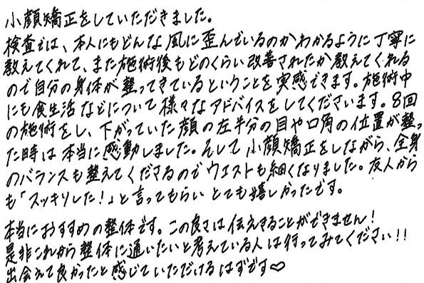 HOME»小顔・美容整体 » 小顔矯正 (Mさん)