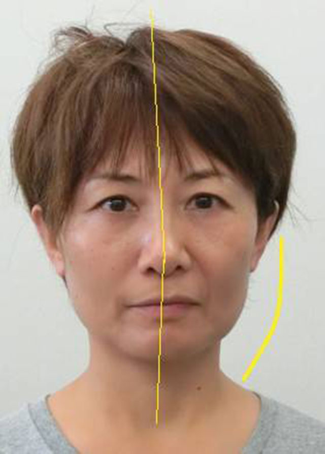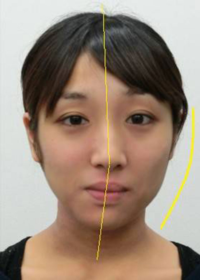 - 日々の生活習慣(片側での噛み癖、頬杖、姿勢など体の歪み、座り方、歯並びや噛み合わせの悪さなど)日々の偏った体や顎の使い方の癖がお顔の歪みに直結します。