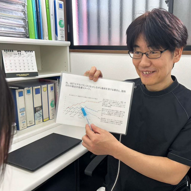 カウンセリングシートをご記入頂き解決したいお悩みをヒアリングしながら根本改善するための説明を致します。